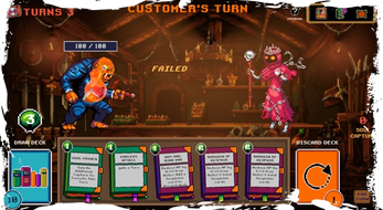The core of the game is the Capture System, a risk-reward gamble that makes each turn a judgement call. To capture a customer is to trap their soul and win the battle by dragging the potion icon onto them. The risk comes from the fact your success isn't guaranteed and all depends on the customer's willpower.